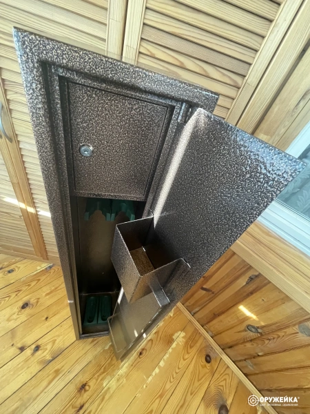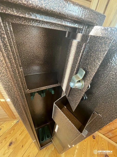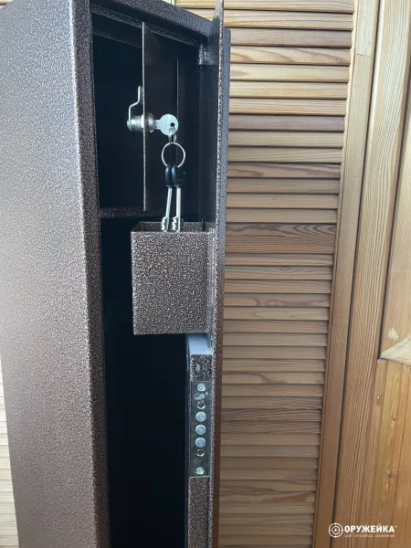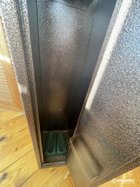 Сейф ОШ-1, количество стволов - 2, высота ствола (мм) - 1200, на двери сейфа два замка, на дверке внутреннего ящика под патроны один замок. Три ключа. Сейф в отличном состоянии.