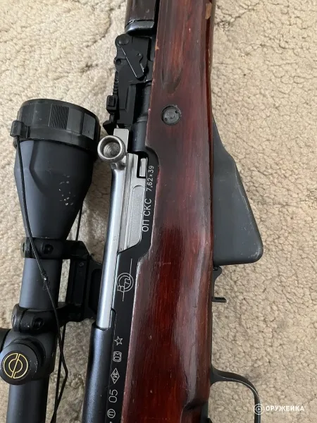 Карабин ОП СКС 7,62х39 в хорошем состоянии с минимальным настрелялом, не более 20 выстрелов 1954 г в в комплекте с быстросъёмный прицелом SIMMONS. Небольшие дефекты на прикладе остались от магазина продаж. Без лицензии просьба не беспокоить! Продажа через разрешительный отдел в Москве.