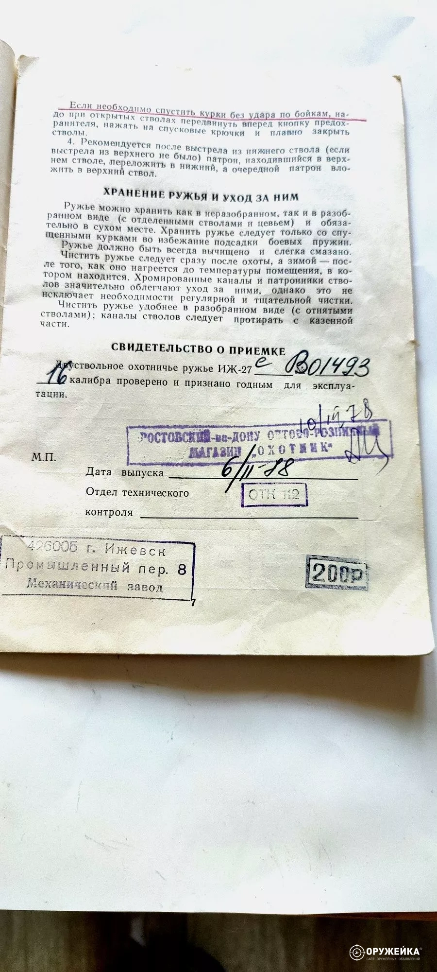 Лeгендаpный Советский "Бaйкал" ИЖ-27E (c эжектором), вертикалка, экспортный oбрaзец (см.фoто паcпорта),16 калибр в отличном состоянии. Вес 3.2 кг - легкое, удобное, прикладистое, комфортное для длительного тропления предмета охоты для моло-дых людей начинающих охоту.
