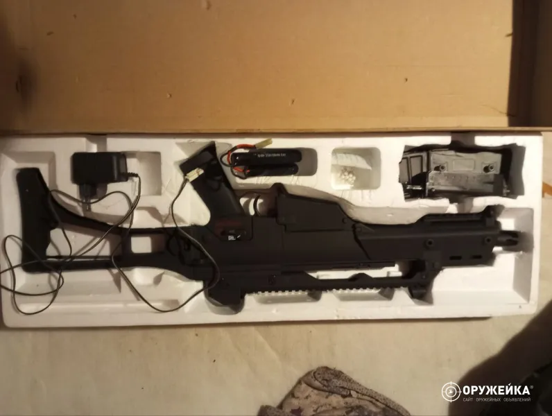 Серия (модель):G36 Тип:AEG Материал корпуса:Пластик Тип гирбокса:Ver. 3 Разъём аккумулятора:Mini Тип аккумулятора:Mini - type Скорость вылета:110-120 м/с Вес без коробки:2700 гр. Общая длина/со сложенным прикладом:725 / 510 мм Длина внутреннего стволика:~ 247 мм Магазин в комплекте:Бункерный Комплектация:Магазин, аккумулятор, зарядное устройство. Страна-производитель:Китай Blowback:Отсутствует Цвет (камуфляж):Чёрный (BK) инструкция утеряна