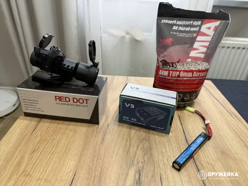 Продам свой страйкбольный привод. В идеальном состоянии (новое). Не пользовался от слова совсем, полный комплект. Так же к комплекту добавлю коллиматорный прицел (Marcool Aimpoint M2), станцию для заряда аккумуляторов, аккумулятор.